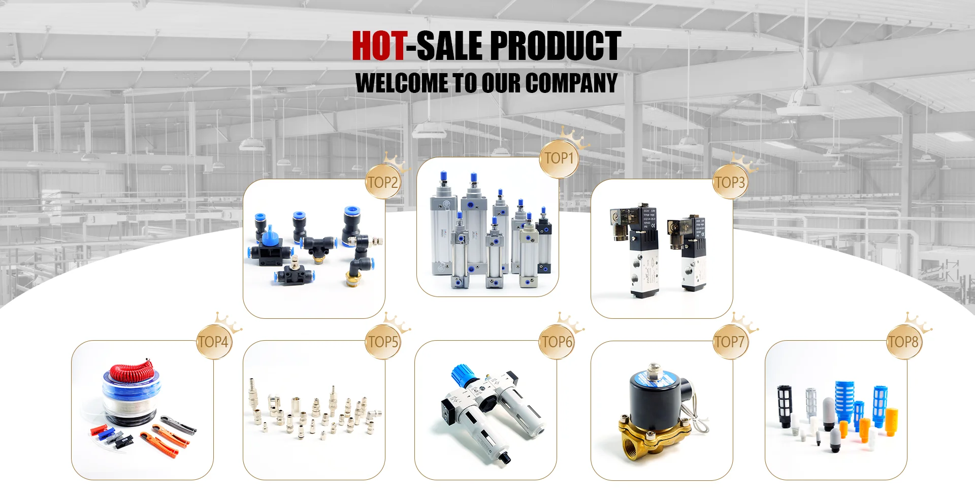 Productos principales:Accesorios neumáticos, válvula solenoide, cilindro de aire, fuente de aire, tubo de aire